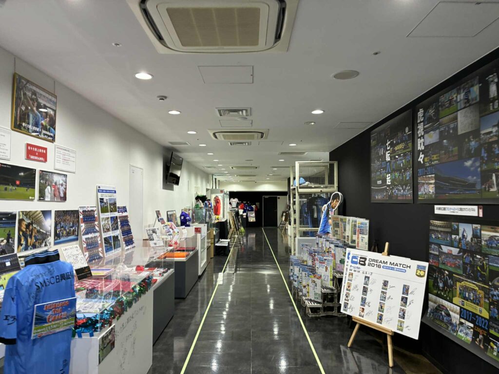 Uvanceとどろきスタジアム by Fujitsu のメインスタンド2階に、2024年12月にオープンした「Uvanceとどろきスタジアム by Fujitsu ギャラリー」には、川崎フロンターレの優勝時の集合写真のタペストリーや記念シャツ、また富士通レッドウェーブ、富士通フロンティアーズ等のかわさきスポーツパートナーの貴重なユニフォームやサイン色紙、そしてアメリカンフットボールW杯2007の資料やトロフィー、その他、等々力緑地内の各施設に縁のある様々な展示品が飾られ、等々力緑地が持つ多様な歴史を伝えています。このギャラリーを巡るコースを含む「Uvanceとどろきスタジアム by Fujitsu スタジアムツアー」に、ぜひご参加ください。