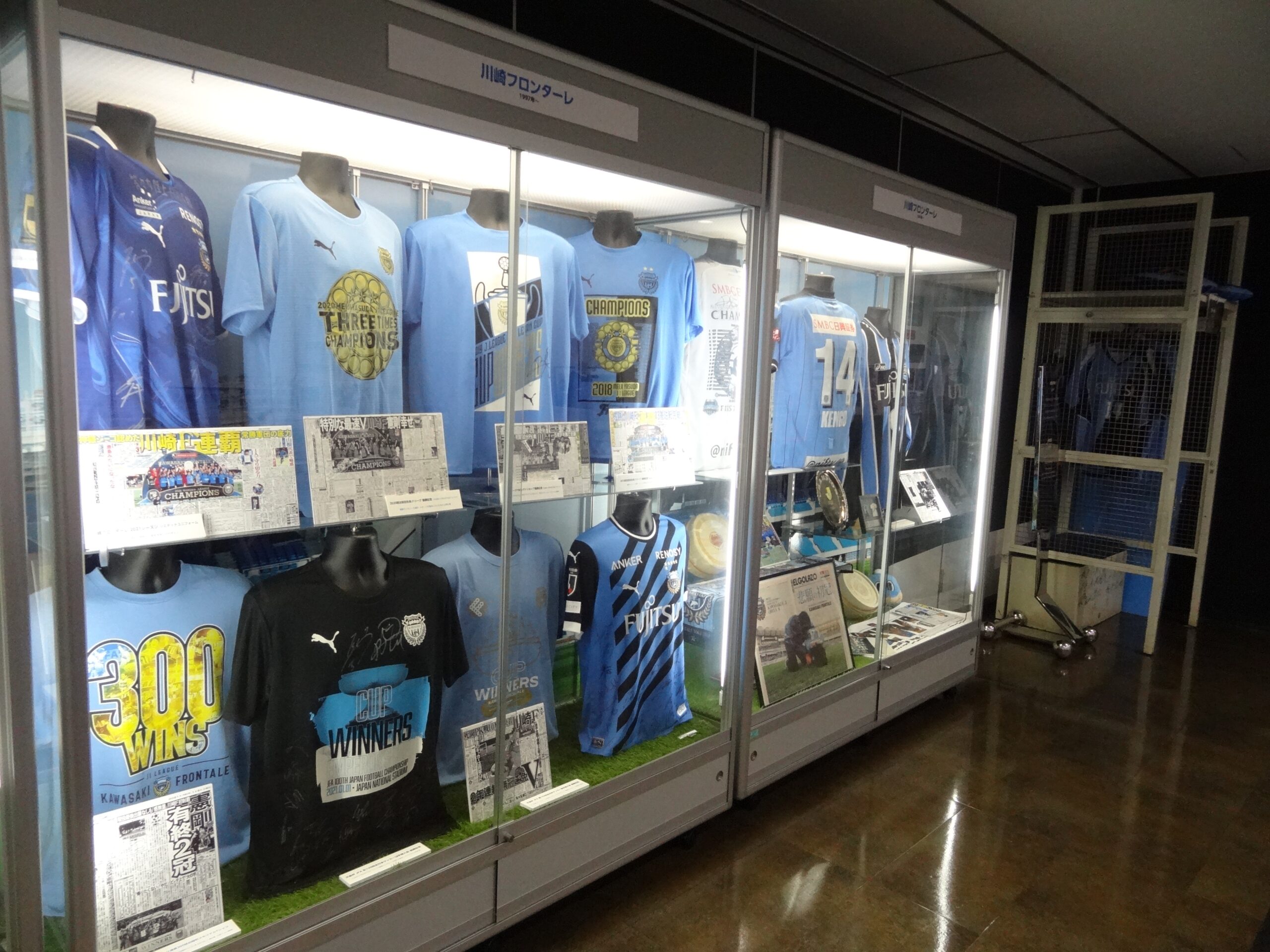 Uvanceとどろきスタジアム by Fujitsu のメインスタンド2階に2024年12月にオープンした「Uvanceとどろきスタジアム by Fujitsu ギャラリー」には、川崎フロンターレの優勝時の集合写真のタペストリーや記念シャツ、また富士通レッドウェーブ、富士通フロンティアーズ等のかわさきスポーツパートナーの貴重なユニフォームやサイン色紙、そしてアメリカンフットボールW杯2007の資料やトロフィー、その他、等々力緑地内の各施設に縁のある様々な展示品が飾られ、等々力緑地が持つ多様な歴史を伝えています。その「ギャラリー」をツアーのコースに含む「Uvanceとどろきスタジアム by Fujitsu スタジアムツアー」を開催いたします。