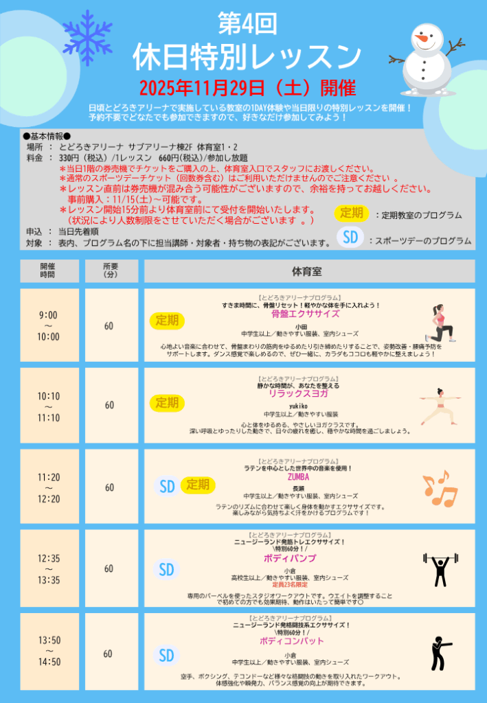 2025年11月29日(土)にとどろきアリーナにて『第4回 休日特別レッスン』を開催いたします。