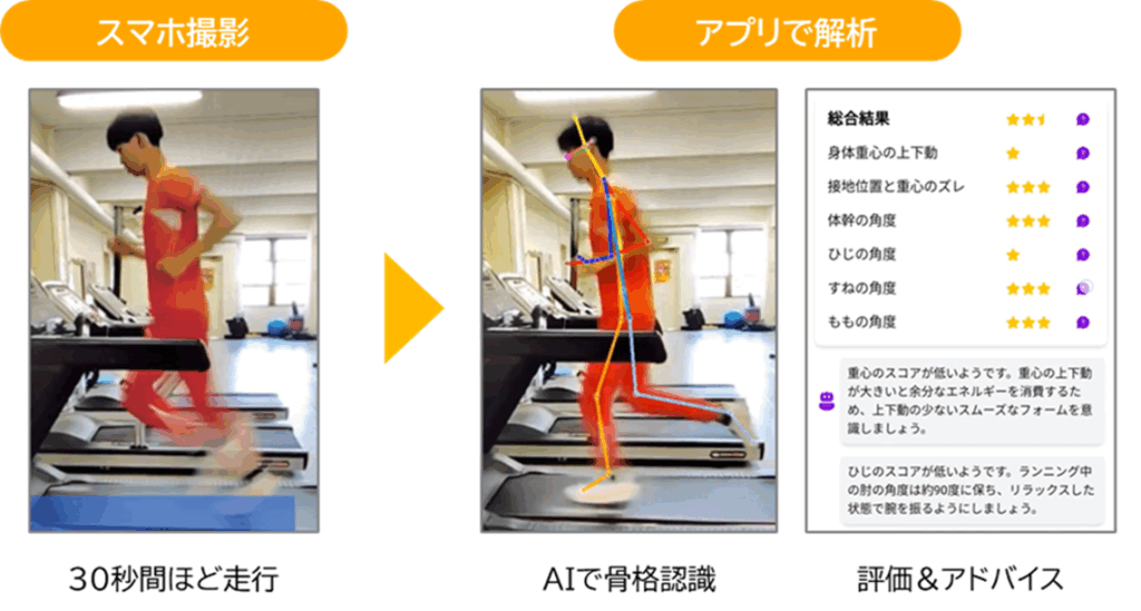 スマートフォンやタブレットで、手軽にトレッドミルでの走行フォームを解析・評価することができます。アプリ詳細はこちら
