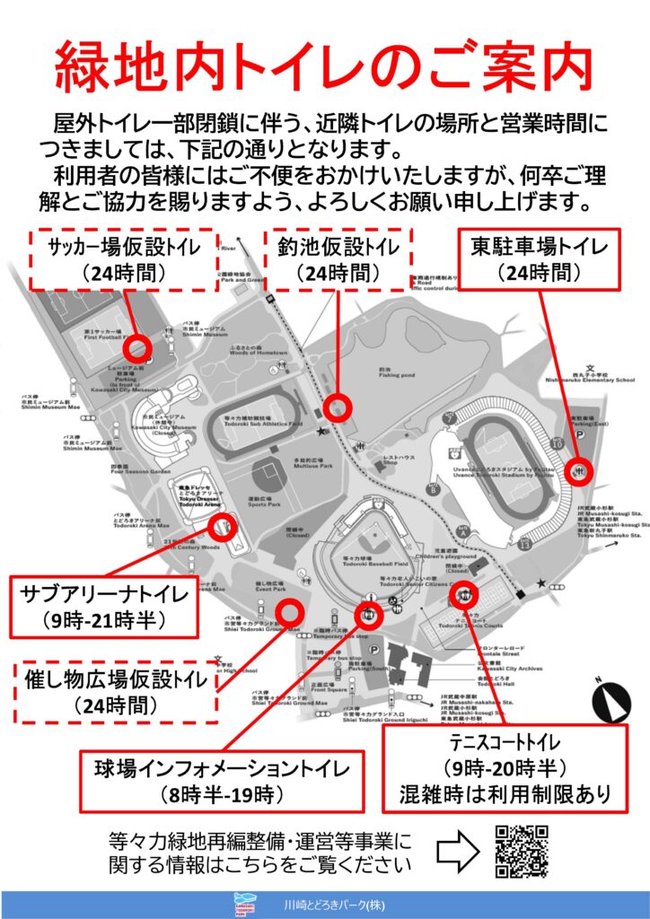【等々力緑地】緑地内トイレのご案内