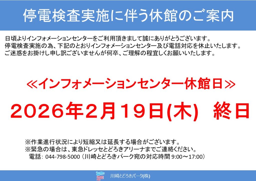 【重要なお知らせ】停電検査実施に伴うインフォメーションセンター休館(2/19)のご案内