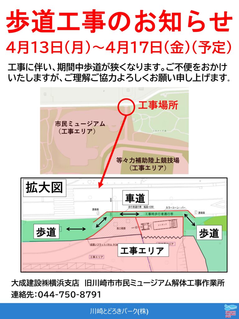 4. 【等々力緑地】歩道工事のお知らせ
