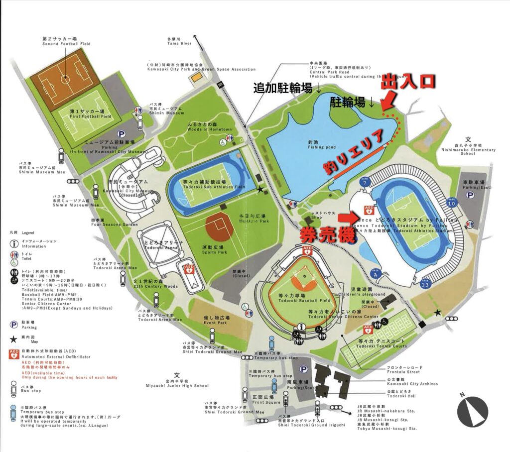 釣池の暫定出入口周辺では、7:30~9:00の時間帯、道路交通法等に基づく交通規制により、バイクおよび車両の通行ができません。