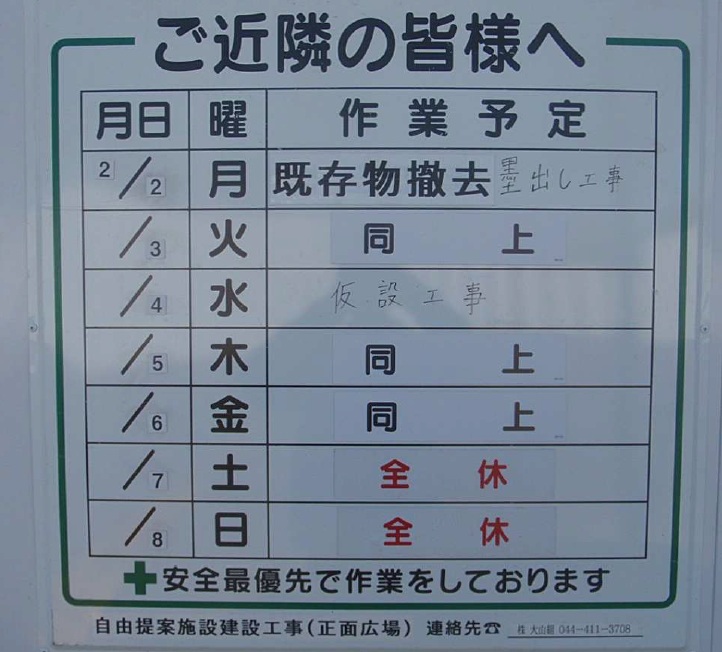 正面広場自由提案施設新築仮囲い設置状況(26/1/9撮影)