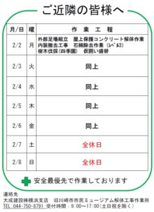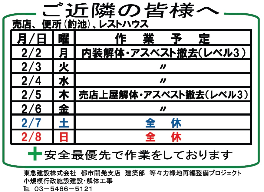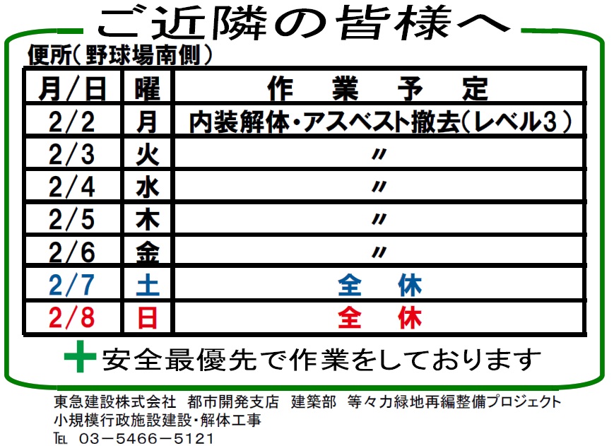 アスベストに関しては、法令に基づき、周囲への飛散を防止する対策を実施したうえで除去工事を進めております。