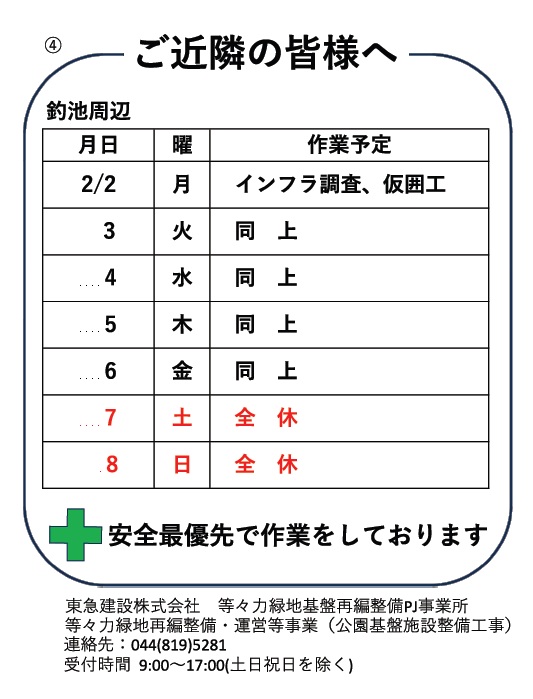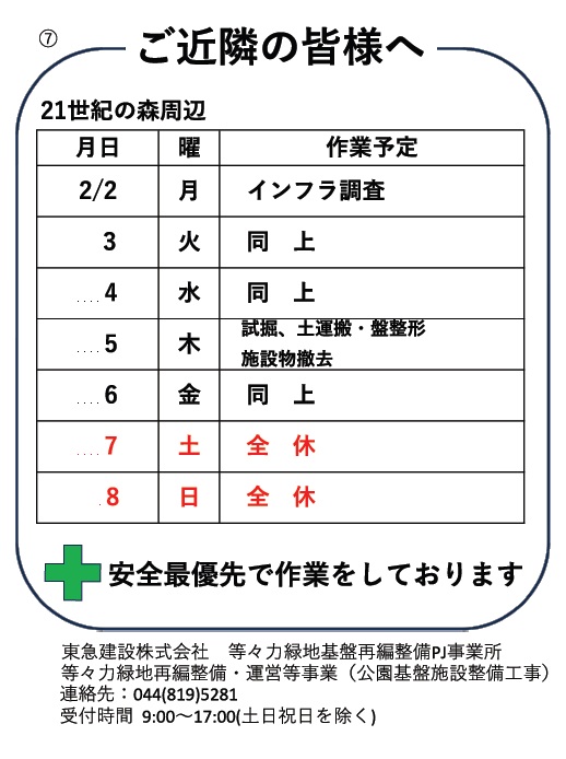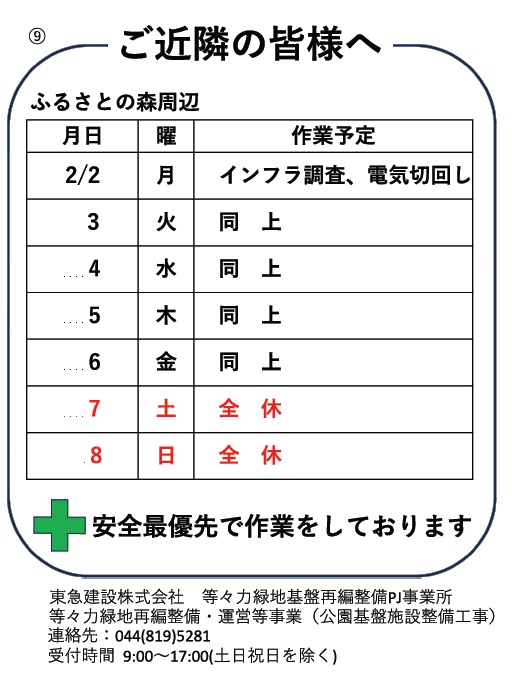 公園内の整備工事に伴い仮囲いが増え、「これまで利用できていたベンチが減っている」「座って休める場所が少ない」といったお声をいただいております。こうした声を受け、ふるさとの森北側に新たにベンチを設置いたしました。