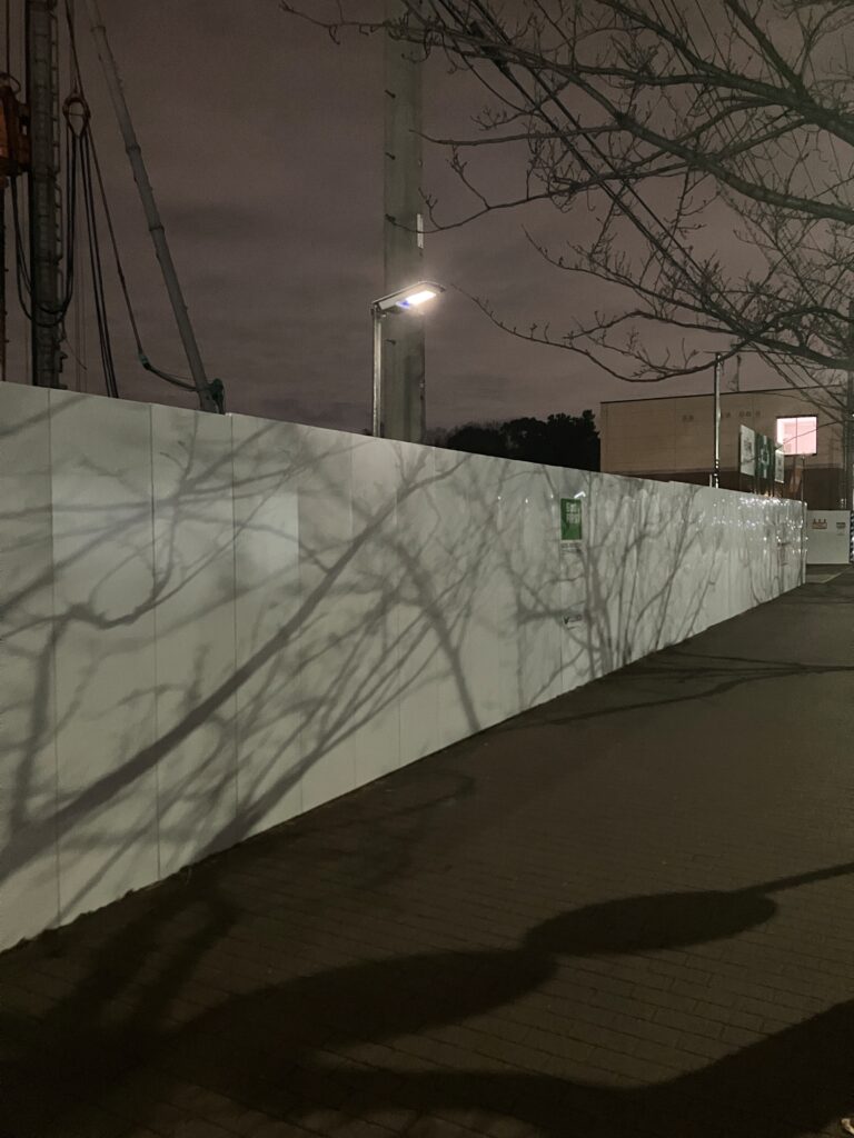 中央園路沿い仮囲い照明設置状況(26/1/20撮影)