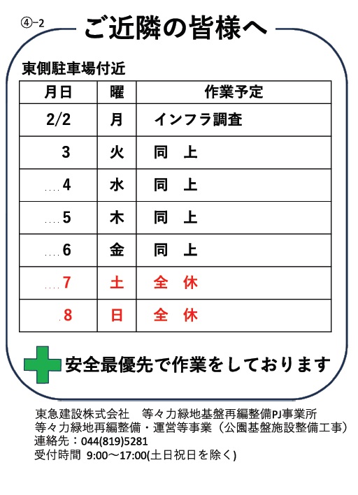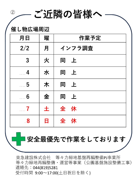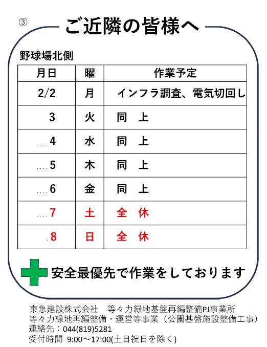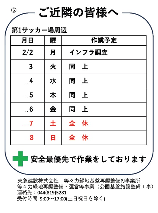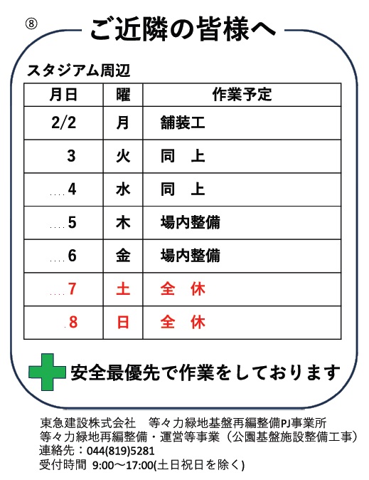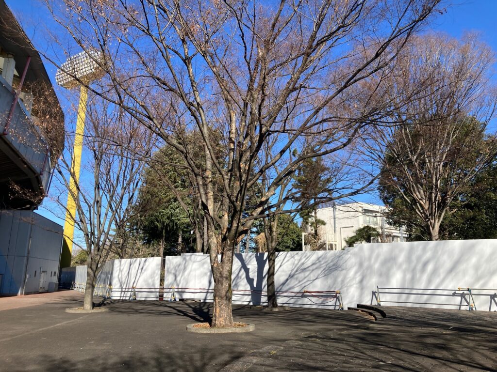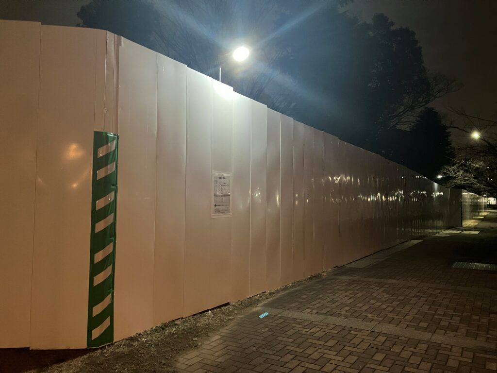 Uvanceとどろきスタジアム東側外周園路整備用仮囲い設置状況(26/1/9撮影)