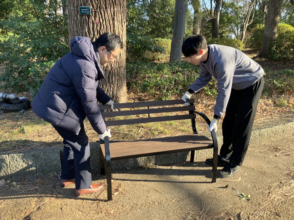 今回のベンチは、川崎とどろきパーク株式会社(KTP)の社員が組み立てから設置までを行い、少しでも休憩しやすい環境づくりを目指したものです。(26/1/16 設置)